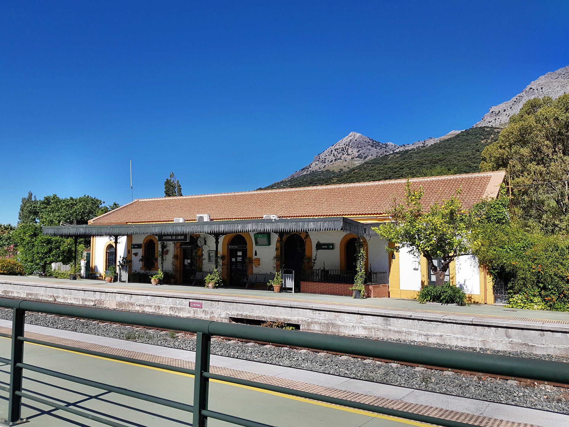Nach dem Frühstück fahren wir zur Cueva de la Pileta, wir wollen vor dem gebuchten Besuch eigentlich noch ein bisschen in der Umgebung wandern, aber außer dem Weg zum Eingang der Höhle gibt es keine weiteren Wege. Die Landschaft ist aber wirklich beeindruckend! Wir fahren ein Stück weiter bis Jimera de Libar, wo wir ein kurzes Stück am Fluss entlang gehen können. Das Dorf hat einen putzigen alten Bahnhof, den müssen wir einfach auch noch fotografieren!