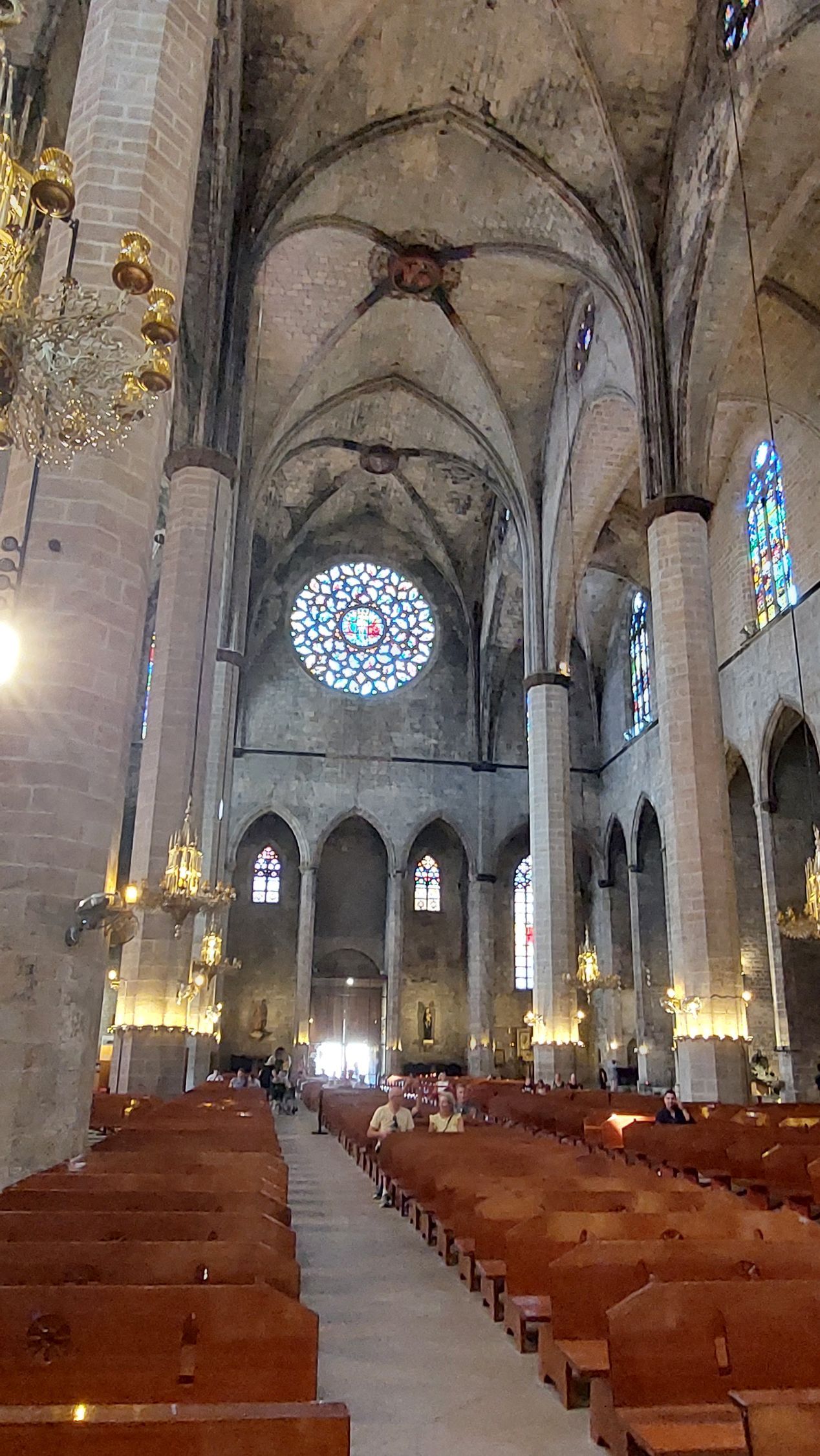 Unter den Kolonnaden* am Passeig Picasso trinken wir etwas, dann machen wir uns auf den Weg. Unser erstes Ziel ist die "Kathedrale der Fischer", Santa Maria del Mar. Die gotische* Kirche beeindruckt uns durch ihre Größe und die Weite des Innenraums. Danach spazieren wir durch die Gassen der Altstadt zur "offiziellen" Kathedrale der Stadt, La Seu. Leider können wir nur ihr wunderbares Äußeres bewundern, weil sie wegen Siesta* geschlossen hat. Schade!