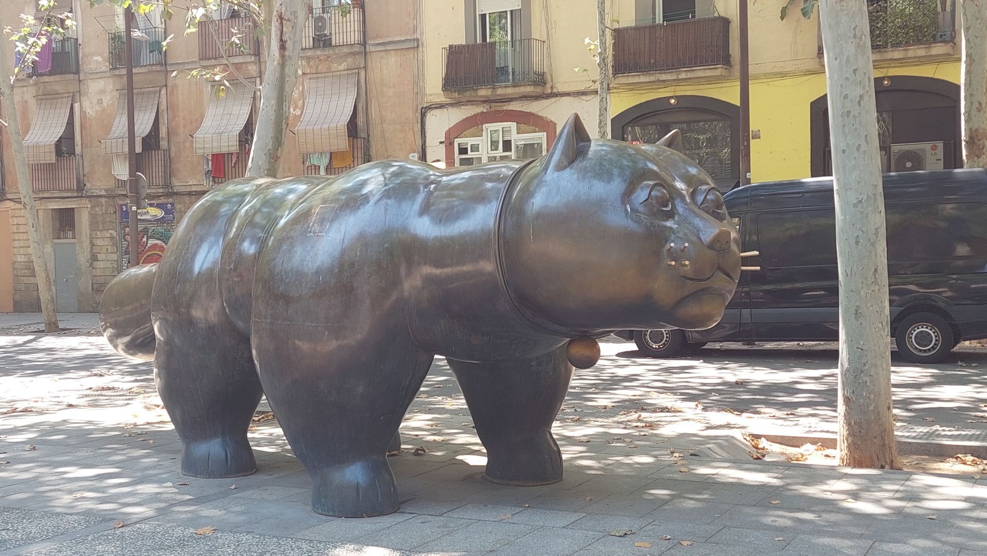 Anschließend spazieren wir zum "Gato Gordo", dem fettesten Kater der Stadt. Nach ein paar Fotos gehen wir hinunter zum Hafen und zur Columbus-Statue. Am Wasser entlang gehen wir dann wieder zu dem Shop, wo unser Koffer deponiert ist.