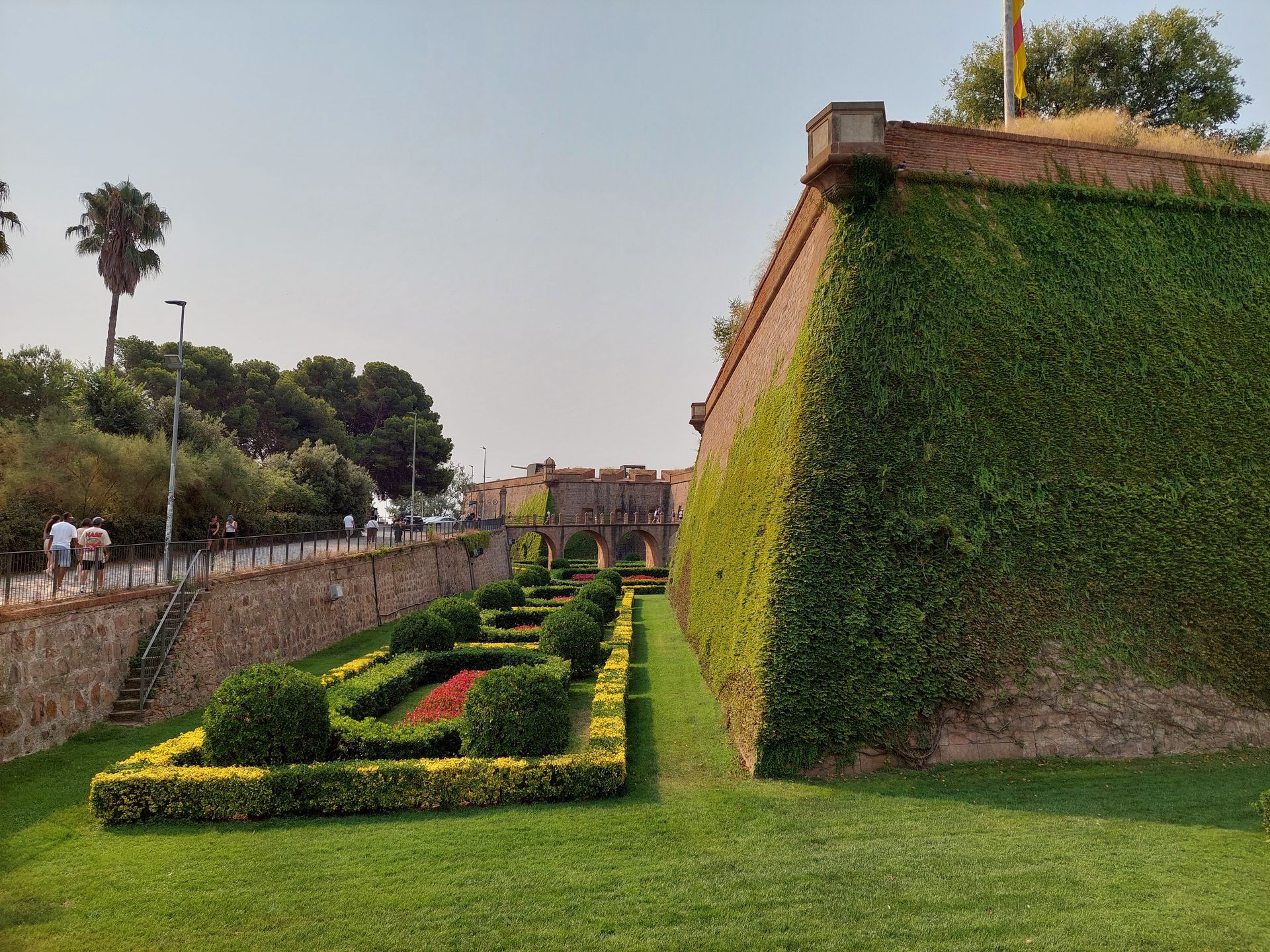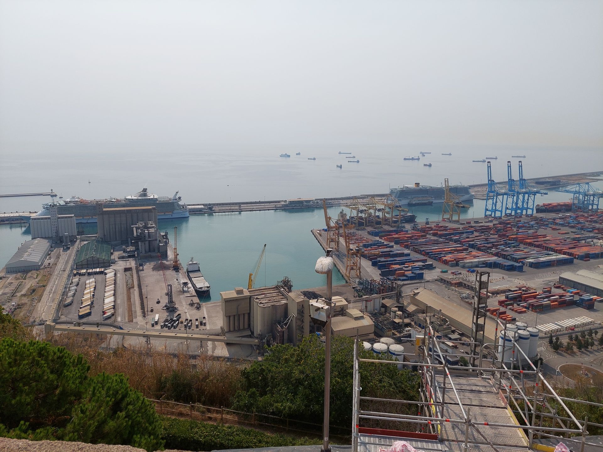 Anschließend fahren wir mit dem Bus bis zur Station Paral-lel - dort kommen wir allerdings nicht auf die Idee, in der Metro-Station nach der Standseilbahn auf den Montjuic zu suchen und gehen im Endeffekt zu Fuß bis zur Seilbahn hinauf zur Festung oben auf dem Hügel. Wir fahren hinauf und besuchen zuerst das Castell*. Im Innenhof trinken wir etwas und von der Dachterrasse haben wir danach herrliche Blicke auf den Hafen und die Stadt.