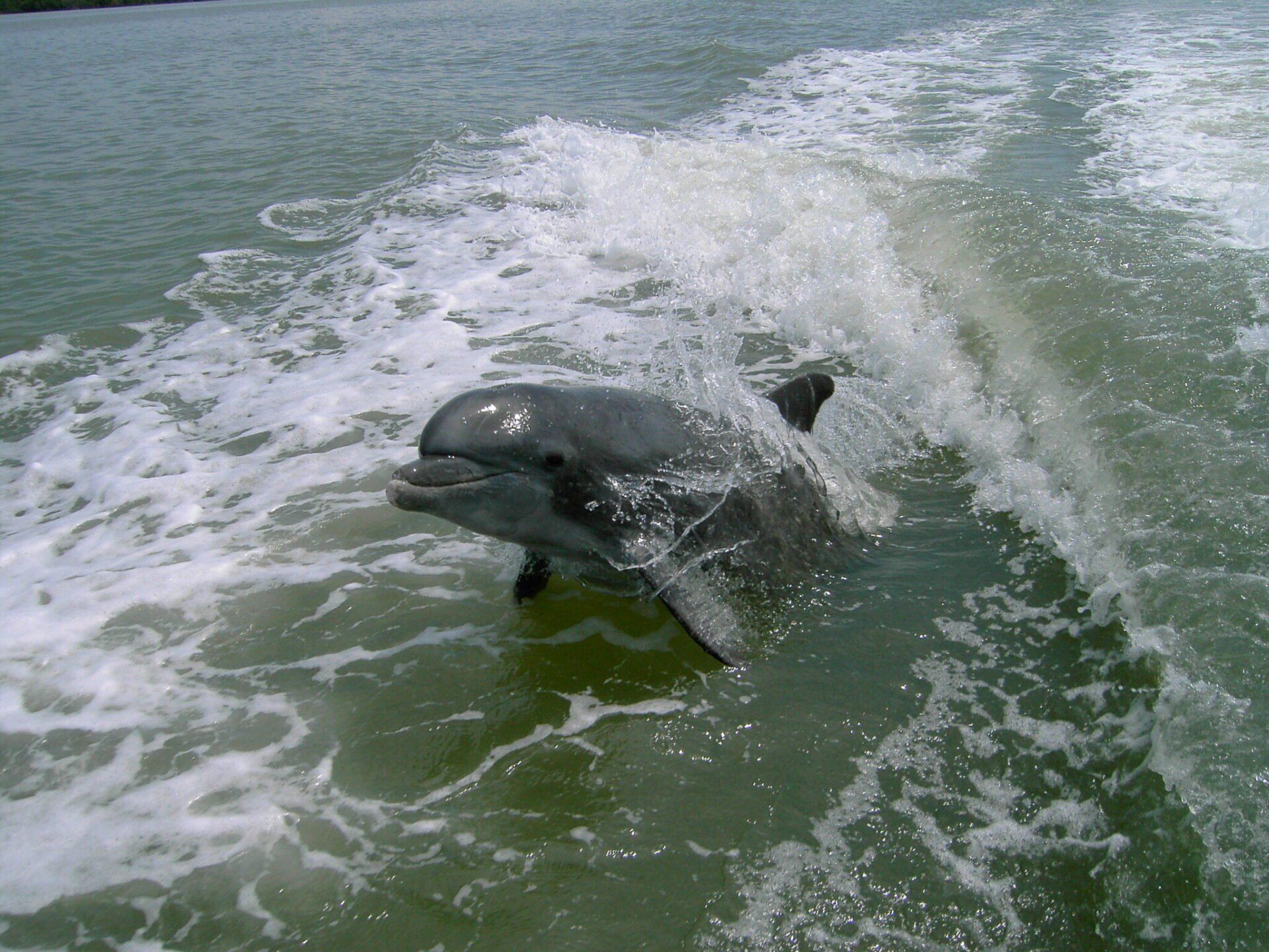 Also geht es mit einem großen Boot, zwei Rangern und einigen anderen Besuchern los ins Gewirr der unzähligen kleinen Inseln mit ihren Mangroven*. Wir sehen zahlreiche Reiher, mehrere Fischadler und andere Vögel, das Highlight* sind aber mehrere Delfine, die in der Heckwelle des Bootes spielen. Und die intelligenten Tiere spielen ganz offensichtlich! Sie haben ihren Spaß damit, die neugierigen Zweibeiner auch mal nass zu spritzen, indem sie sich aufs Wasser klatschen lassen... Aber auch wir haben viel Freude damit, sie dabei zu beobachten!