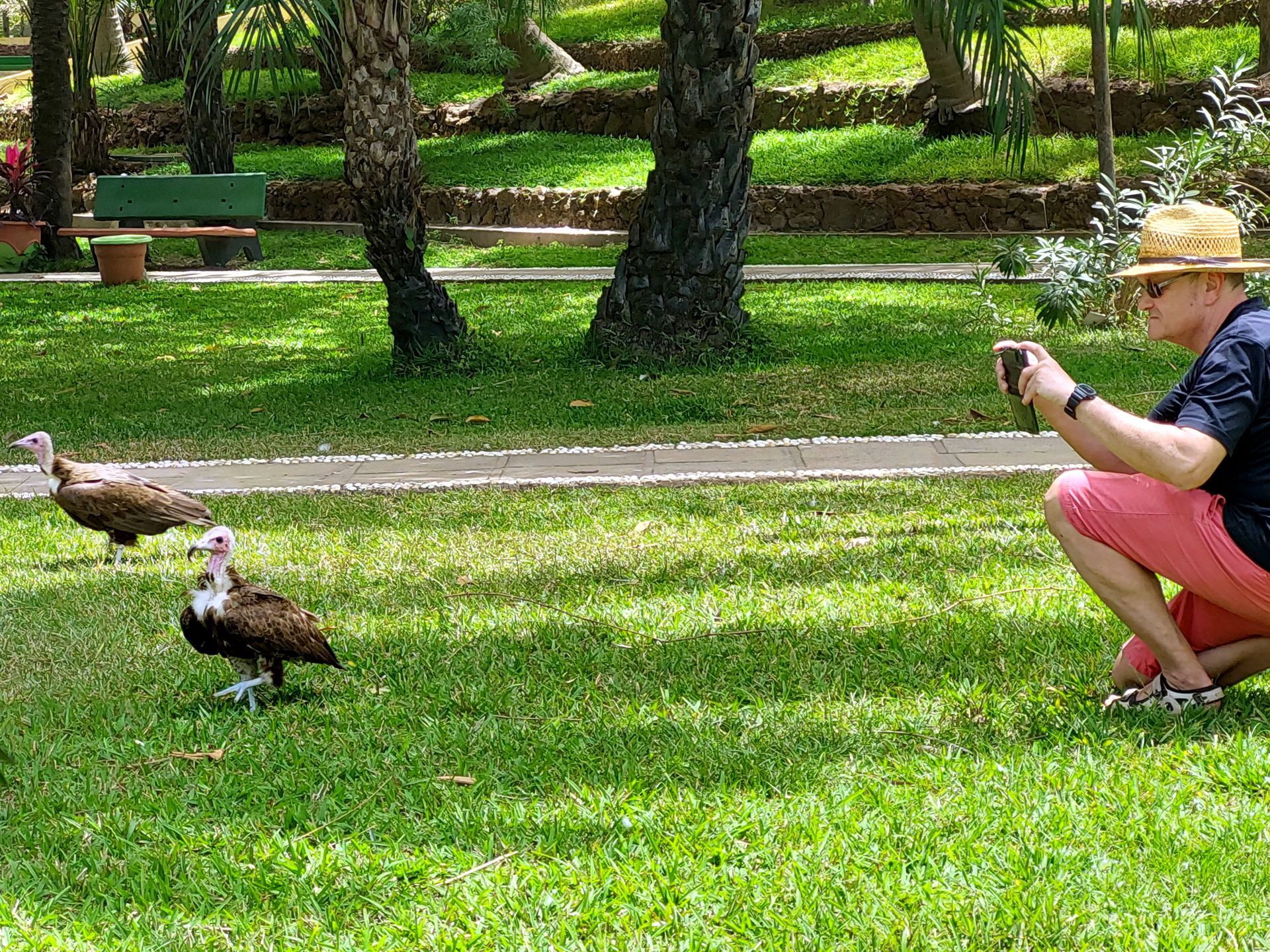 Den restlichen Tag verbringen wir mit Relaxen, Vogelbeobachtung und Fotografieren. Am Nachmittag gehen wir mal auf die Suche nach Briefmarken, aber wenn überhaupt verkaufen die Geschäfte nur welche zusammen mit Karten - und die hab ich ja schon. Ein junger Mann, der uns hilft, hat die Idee, dass uns da doch Musa unterstützen könnte. Ich schreibe unserem Freund und er wird das (wegen dem Feiertag morgen) am Freitag erledigen.
