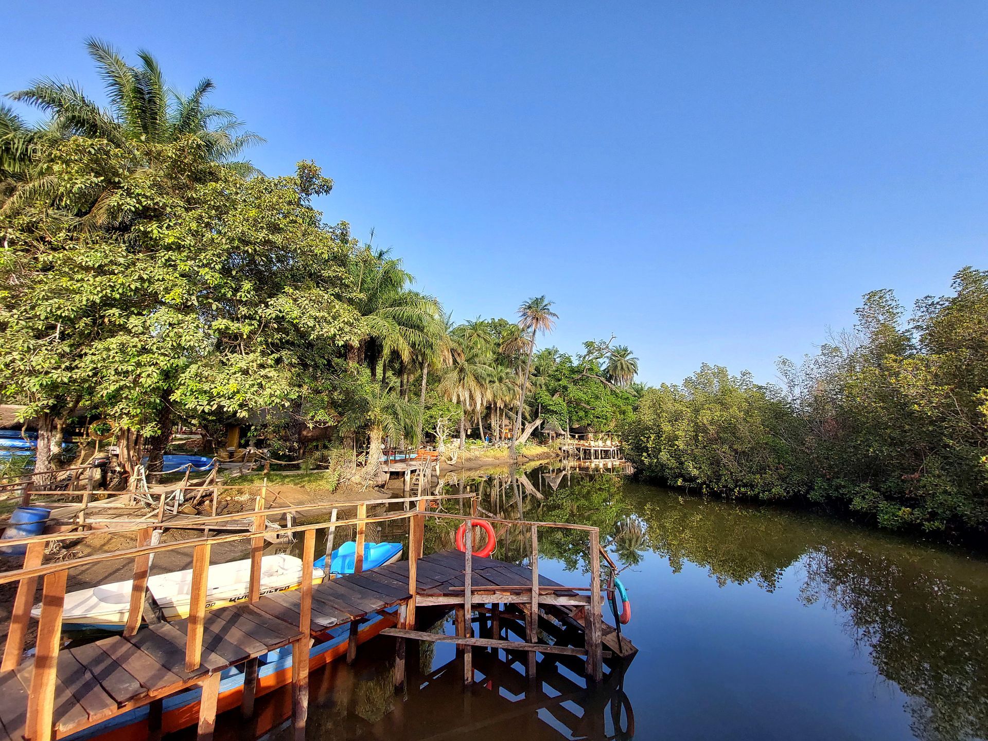 Wir sehen viele wasserliebende Vögel, darunter mehrere Schlangenhalsvögel und verschiedene Eisvögel - das Highlight* ist aber definitiv ein Goliathreiher, der größte Reiher der Welt! Die Landschaft ist wunderschön und alles hier ist viel weitläufiger und verwinkelter, als wir uns das vorgestellt haben. Alles in allem wirklich eine tolle Tour!