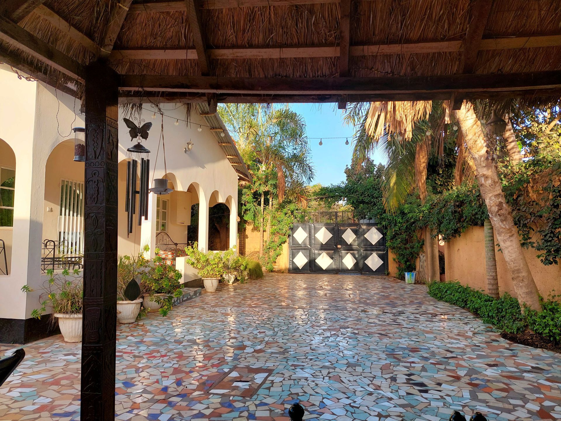 Unser Freund Buba erwartet uns schon und begrüßt uns herzlich. Über die neue Straße sind wir schnell in Kololi und in der Mandinka Lodge. Lamin und Diane begrüßen uns wie alte Freunde und bringen uns in die Suite, wo wir für die ersten beiden Wochen wohnen werden. Die Suite ist riesig und wirklich schön.
