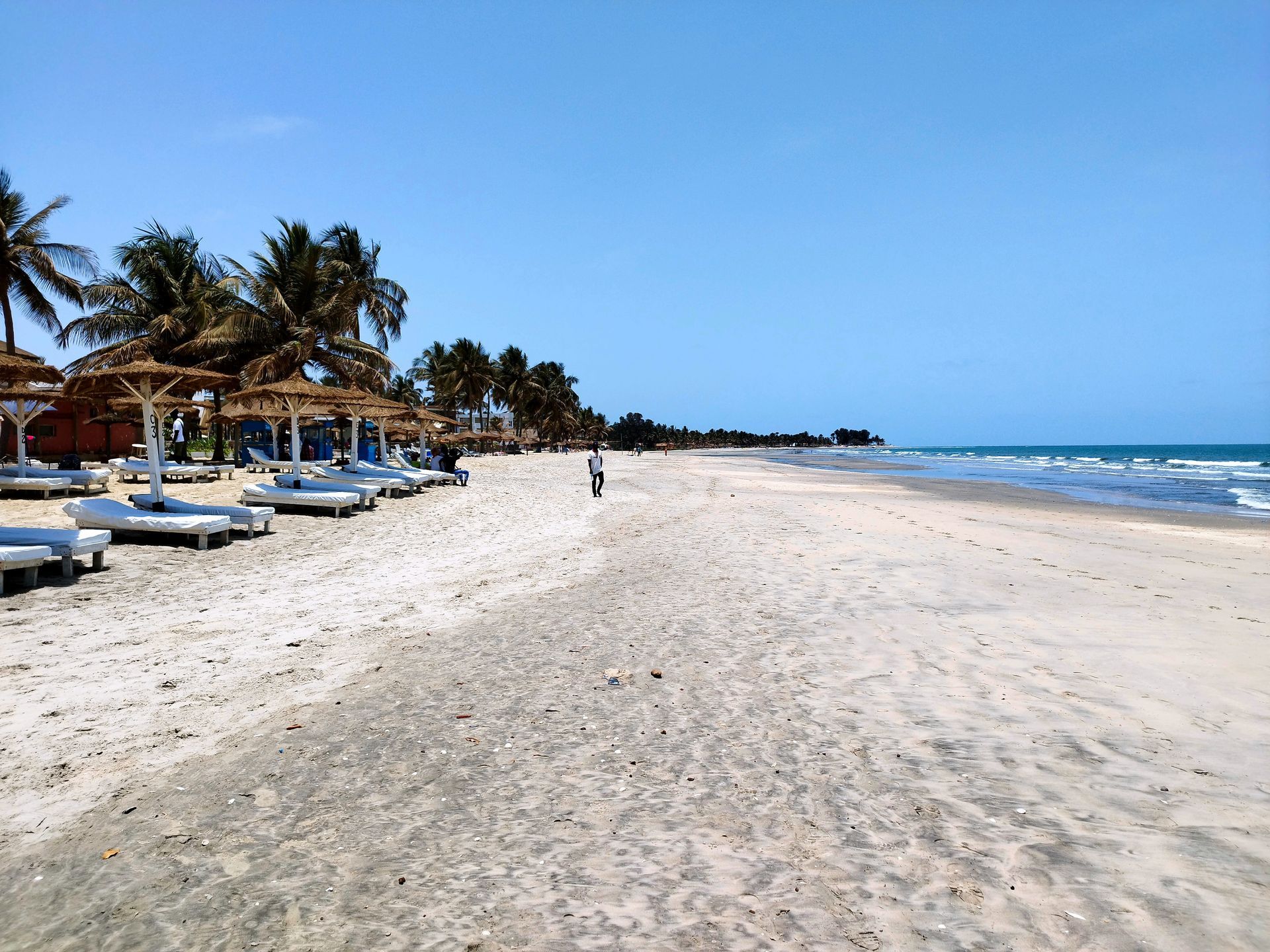 Fatou und ich fahren mit den Kindern im Auto, Christian geht am Strand entlang zu Fuß (und ist auch nur ein paar Minuten nach uns da). Am Strand sichern wir uns einen Schirm, drei Liegen, ein paar Hocker und einen Sessel, bestellen uns etwas zu trinken und entspannen uns. Mein Schatz geht mit den Kindern ins Wasser, aus dem Muhammed, Babu und vor allem Ara am liebsten gar nicht mehr raus möchten. Später gibt's noch Lunch und für die Kinder frische Säfte, dann packen wir zusammen und ich zahle.