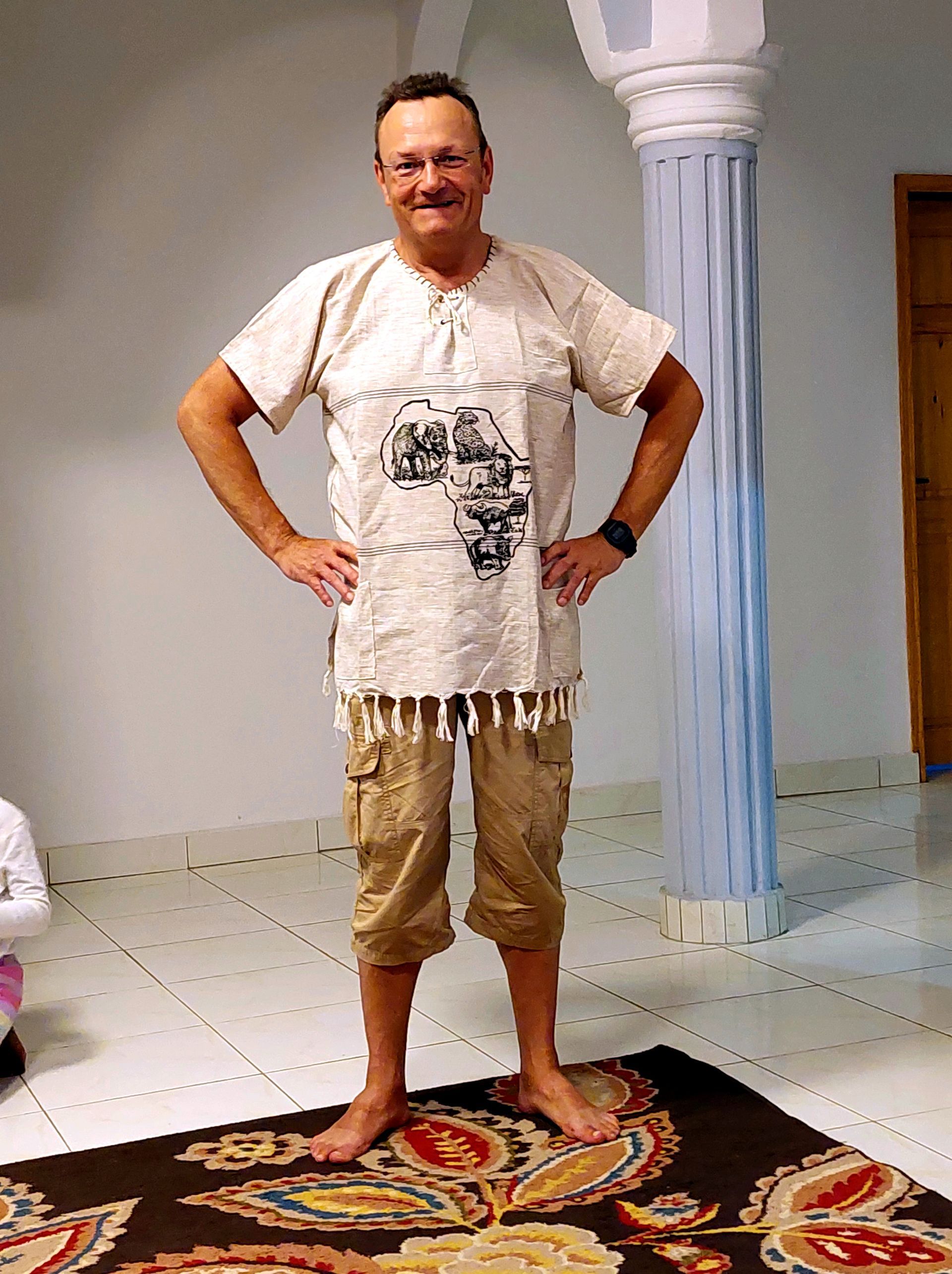 Als Papis nach Hause kommt, gibt es die nächste Umarmung. Auch er freut sich sehr über seine Uhr, er ist der Meinung, die sei das beste Geschenk von allen - was alle anderen Familienmitglieder allerdings vehement* bestreiten. Nach Sonnenuntergang wird das Fasten gemeinsam gebrochen, noch ist ja Ramadan*. Kurz danach fahren Papis und Fatou uns zurück zur Lodge.