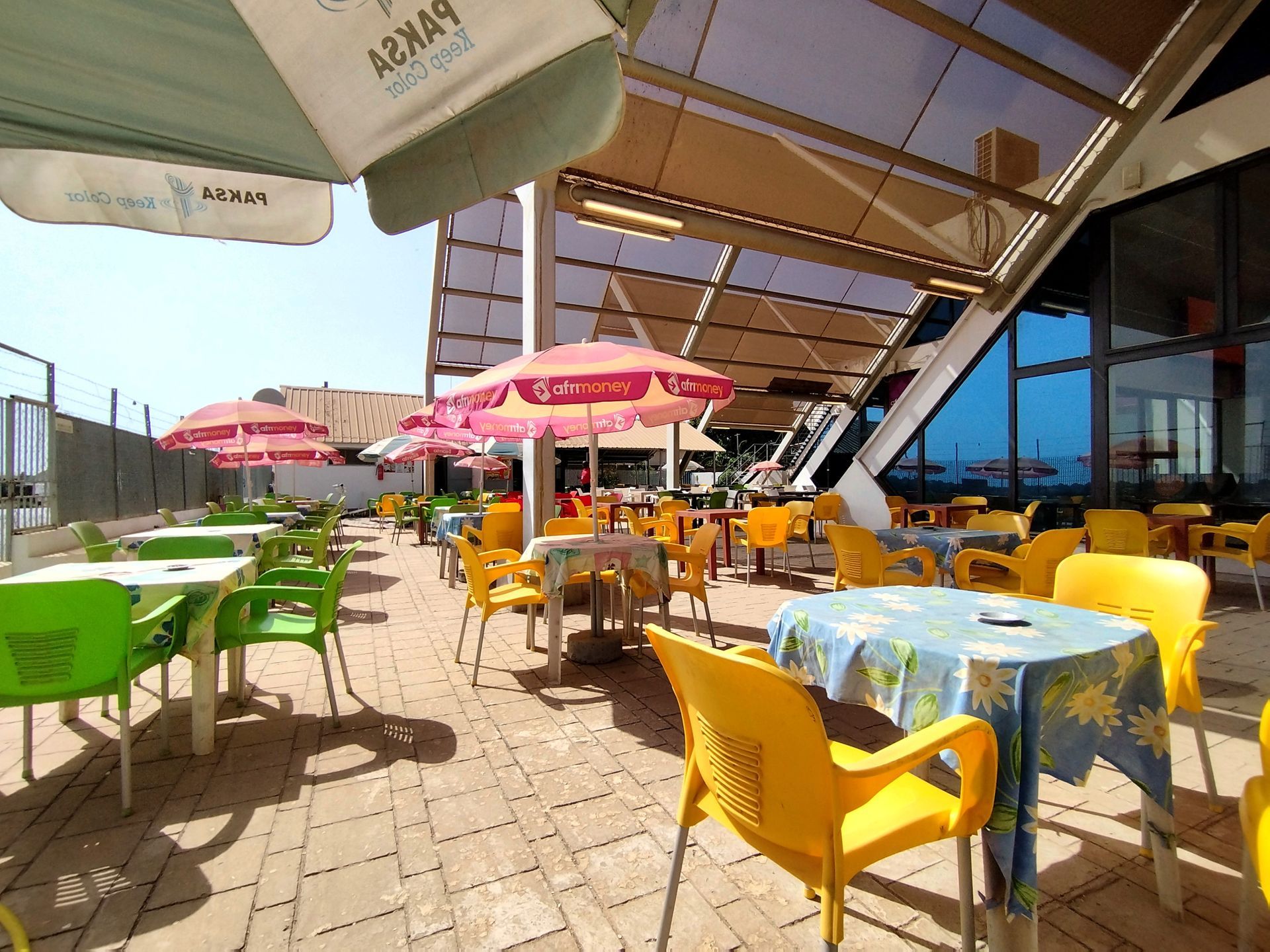 Anschließend gehen wir ins Einkaufszentrum "Tropic" und treffen uns dort mit Fatou. Sie und die Kinder können hier essen und trinken, was sie wollen. Für die Kinder gibt es hier auch eine "Game-Zone"*, wo sie an Simulatoren und anderen Geräten spielen können und viel Spaß haben.