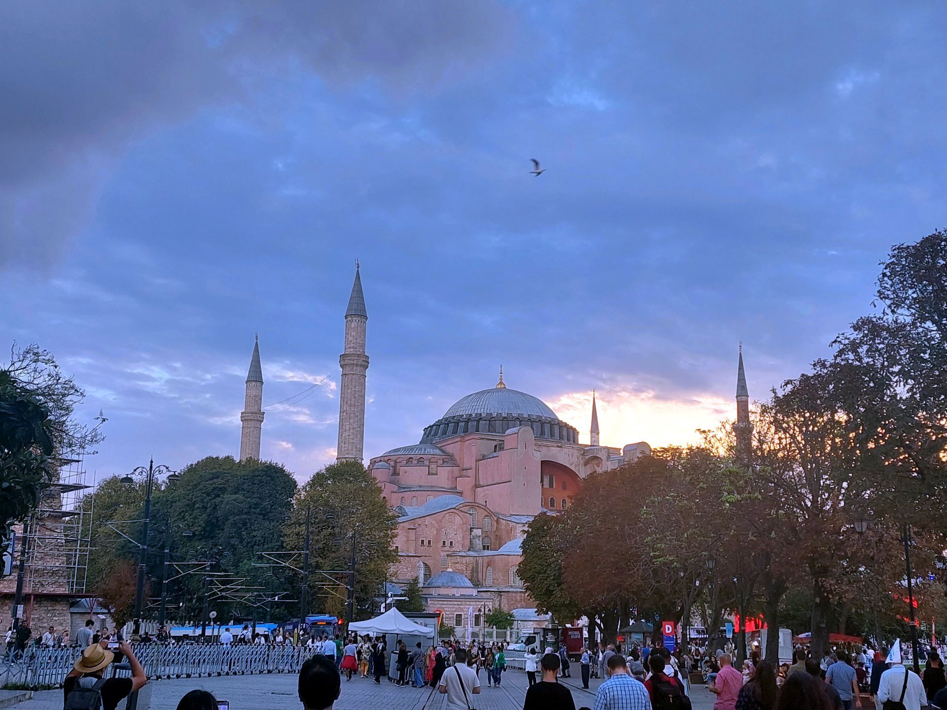 In den nächsten Stunden sehen wir viele interessante und bekannte Orte wie die Universität, den alten Büchermarkt und den Großen Bazar*. Außerdem begegnen uns auch unzählige der berühmten Katzen, die hier zum einen fast Narrenfreiheit haben und zum anderen auch von den Anwohnern versorgt werden. Das Highlight* für uns ist aber das antike Hippodrom* (bzw. der Platz, der die Maße der antiken Rennbahn heute noch zeigt) mit den schönen Gebäuden und Sehenswürdigkeiten. Zu unserer freudigen Überraschung können wir die Hagia Sophia sogar besuchen, diese uralte Kirche, die vor ein paar Jahren von einem Museum wieder zu einer Moschee umgewidmet wurde, ist wirklich extrem beeindruckend! Bei der Blauen Moschee haben wir immerhin die Gelegenheit zu schönen Fotos im Innenhof.