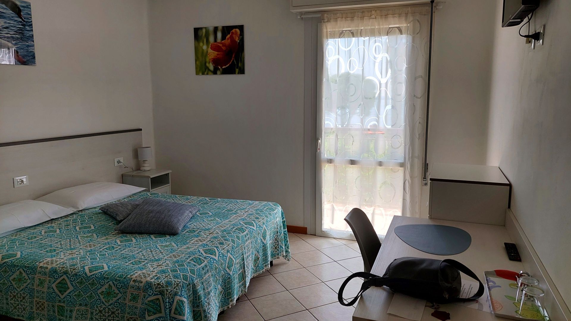 Nur um Florenz herum ist viel Verkehr, aber sonst geht es problemlos voran und wir erreichen am frühen Nachmittag Manerba del Garda. Da es für den Check-in* in unserem gebuchten B&B noch zu früh ist, trinken wir am Hafen noch etwas, bevor wir zur "Villa Mayoti" fahren. Die junge Chefin begrüßt uns freundlich und bringt uns zu unserem schönen Zimmer mit Blick zum See.
