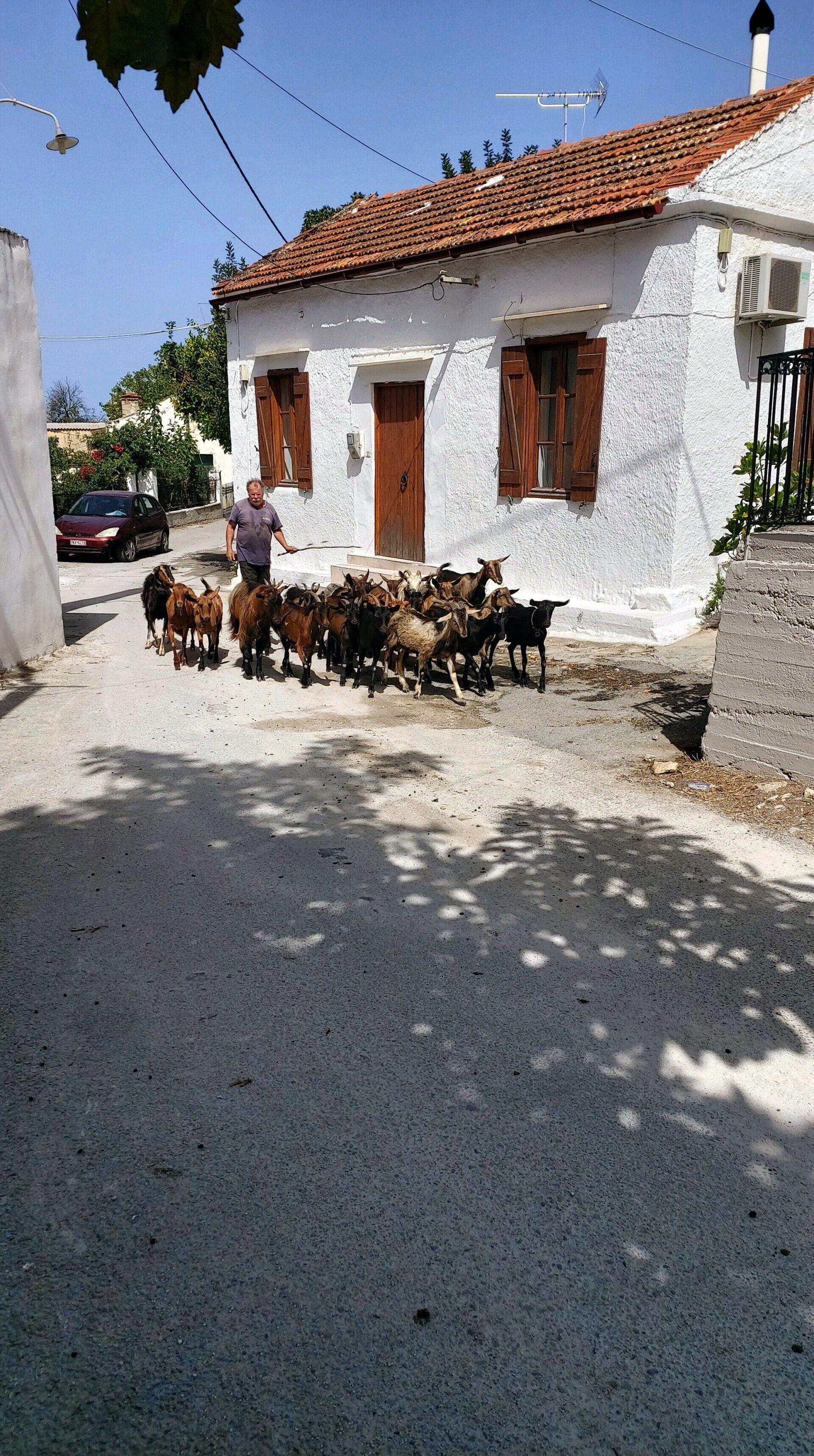 Heute starten wir nach dem Frühstück, um die Orte an der Küste östlich von Chóra Sfakíon zu erkunden. Die Straße hinauf nach Anópoli ist schon wirklich krass! Und auf und an der Straße weiter nach Chóra Sfakíon treffen wir jede Menge Ziegen, die sind hier wirklich überall unterwegs...