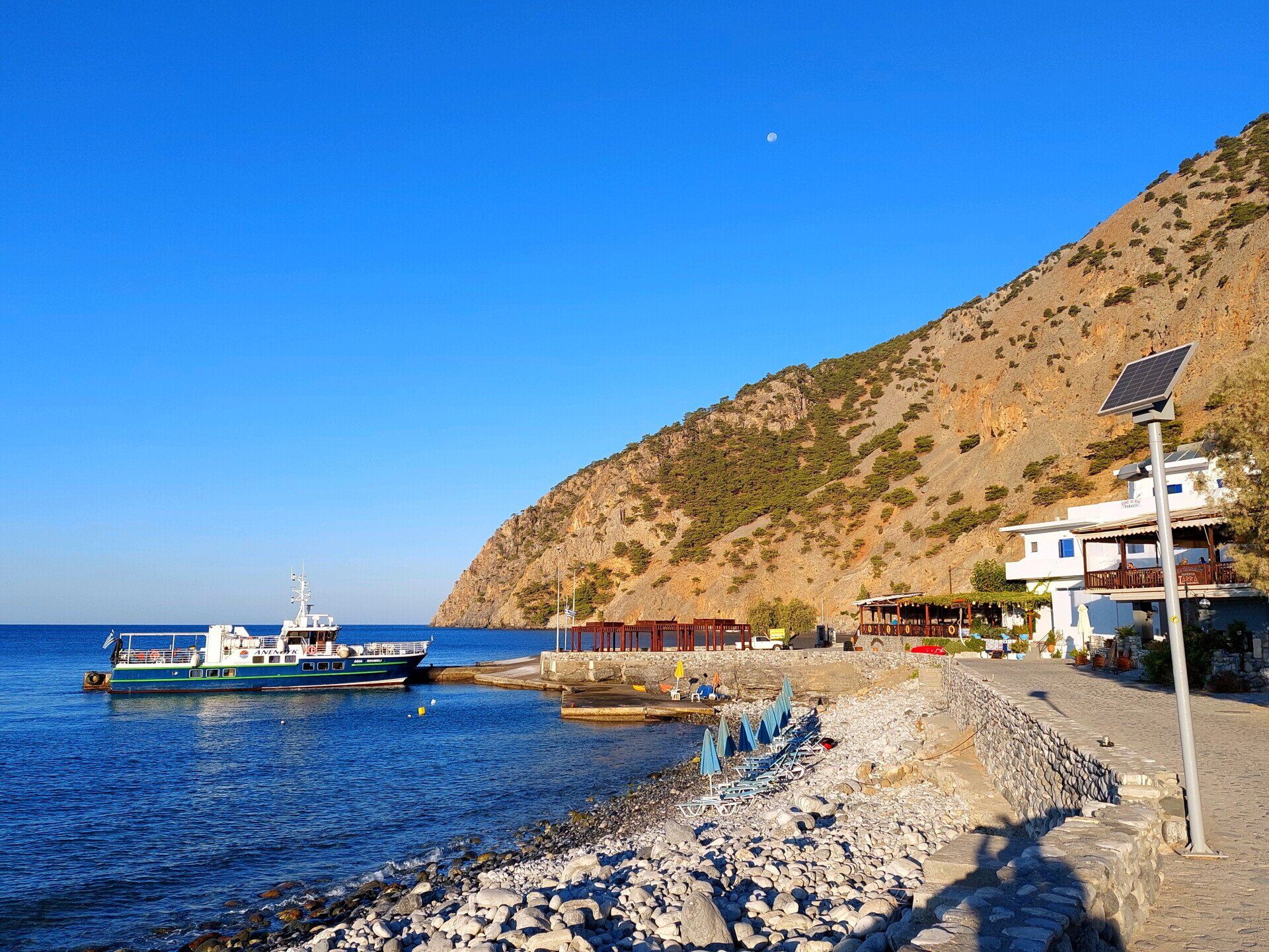 Heute müssen wir früh aufstehen, um 7:00 Uhr haben wir Frühstück und um 7:30 Uhr kommt das Taxi-Boot nach Agía Rouméli, das Pavlos organisiert hat.