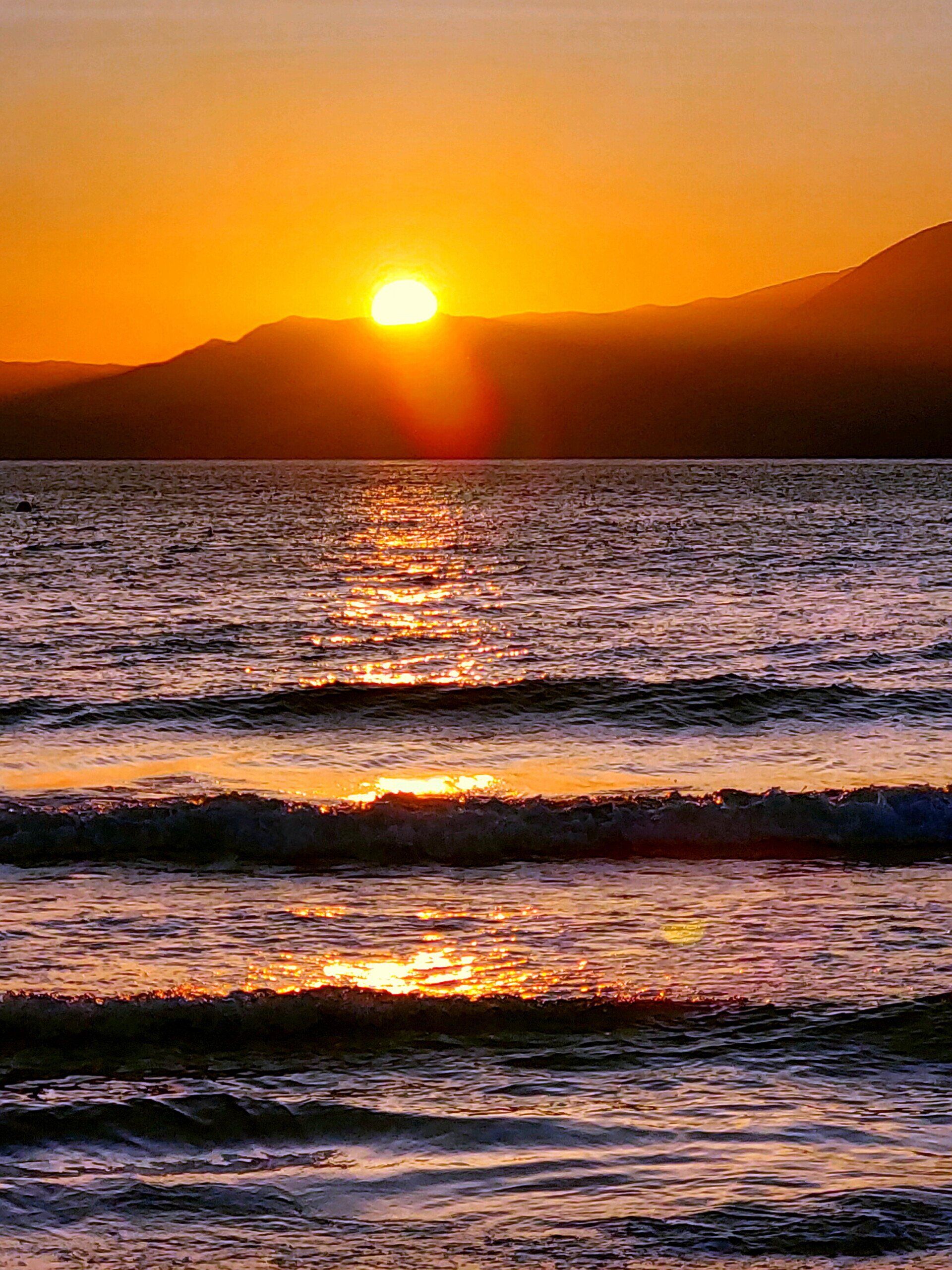 Anschließend gehen wir an den Strand und genießen Sonne und Meer. Am späteren Nachmittag gönnen wir uns ein Eis, danach geht's noch mal an den Strand.
