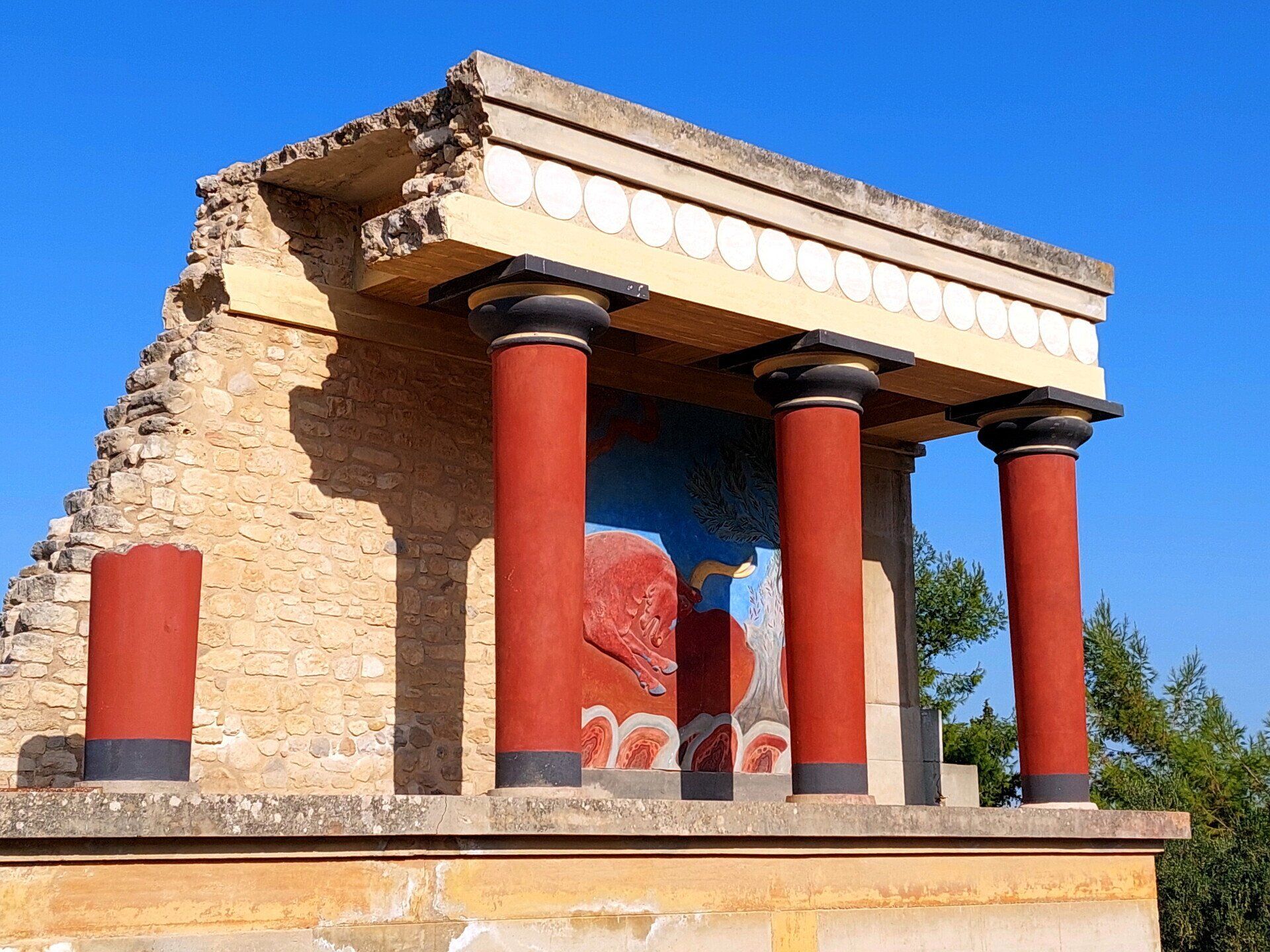 Kurz vor 9 Uhr sind wir auf dem Parkplatz in Knossos. In der Ausgrabungsstätte sind Teile aus Sicherheitsgründen nach dem Beben gesperrt, so können wir das (vermutlich wunderbare) "Megaron der Königin" und auch das "Megaron des Königs" nicht sehen. Aber auch das, was wir ohne weitere Einschränkungen anschauen können, ist sehr beeindruckend. Die Rekonstruktionen* durch Sir Evans* sind aus unserer Sicht eher anschaulich als übertrieben.