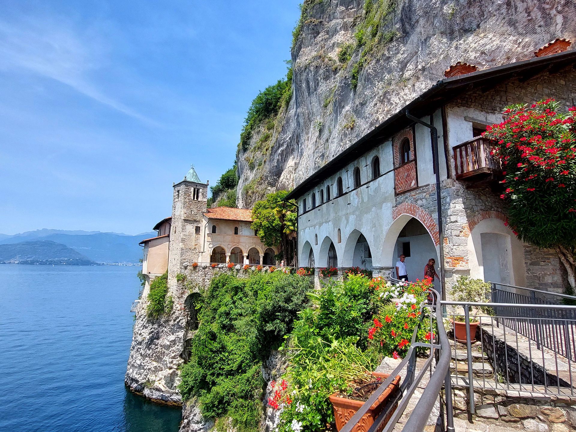 Als Behinderte mit Begleitperson zahlen wir im Kloster S. Caterina al Sasso keinen Eintritt (weil wir über die Treppe gehen und nicht den Lift benutzen). Es ist schon wirklich sehenswert, wie die Klostergebäude über dem Wasser quasi am Felsen kleben... Kein Wunder, dass die Anlage einer der bekanntesten Orte - und der beliebtesten Selfie-Spots* - am Lago ist!