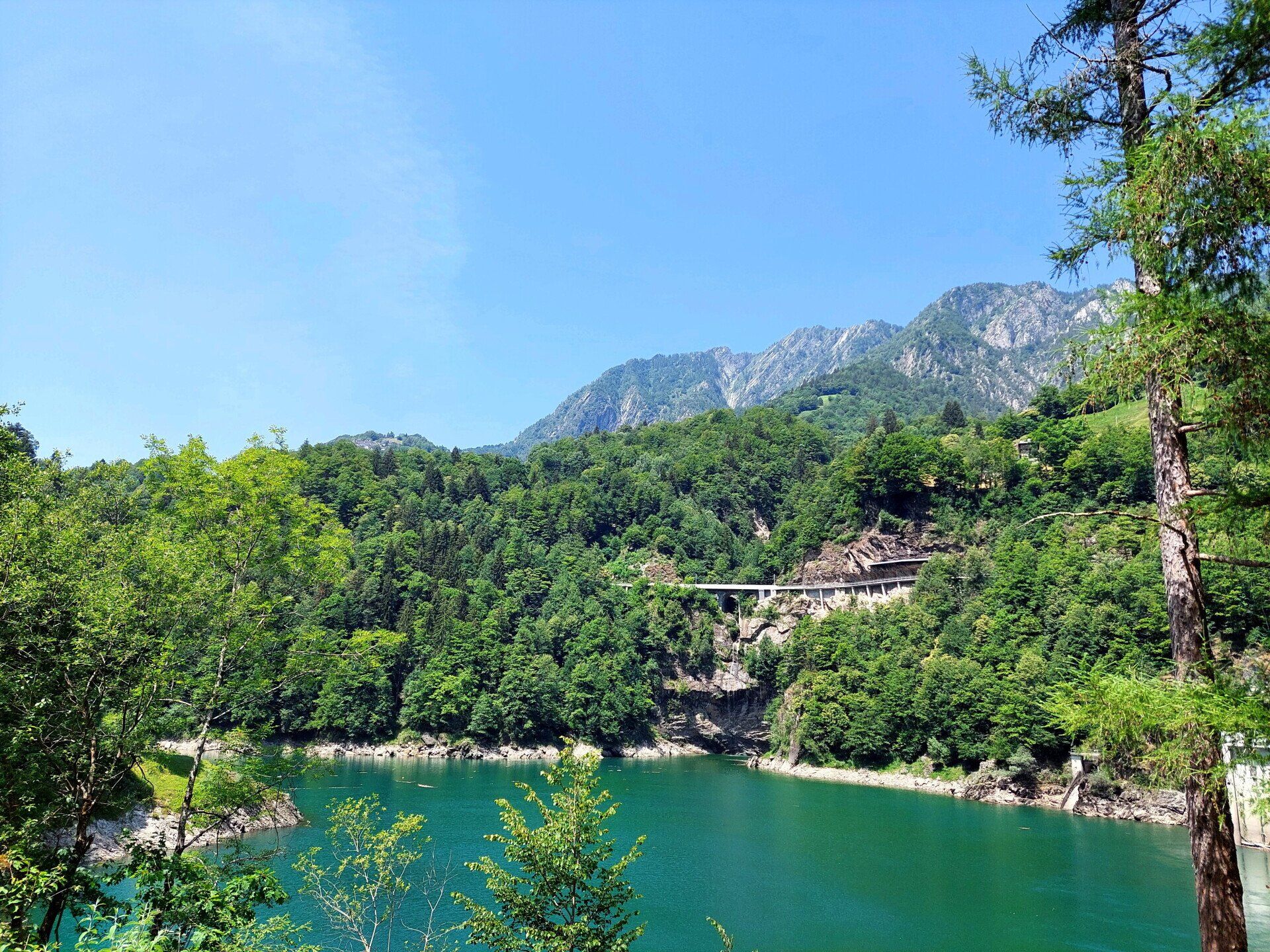 Wir fahren weiter ins Val Vigezzino, in den Wallfahrtsort* Ré mit seiner gewaltigen Basilika*. Leider können wir den alten Teil der Kirche nicht besichtigen, weil dort gerade eine Messe stattfindet. Jetzt geht es über die Schweizer Grenze ins Centovalli. In einem netten Lokal trinken wir etwas (das erste "Rivella" seit Jahren...), dann fahren wir zur Staumauer und genießen die Aussicht über den See und ins Tal. Immer wieder sehen wir auch die Centovalli-Bahn fahren, nur leider nie an den spektakulären Stellen...